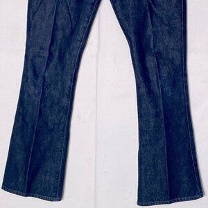 Great used condition. No holes, stains, pilling, pulls or puckering. Minimal signs of wear. Dark Wash, flare leg. Size 31, measurements in pics.