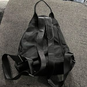 Black, Big Zipper Backpack with two outer pockets, one on the front, one on the back with another pocket on the inside the back pocket.