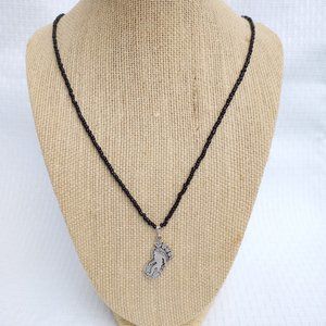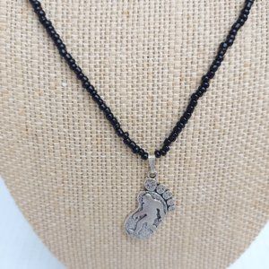 Bigfoot Sasquatch black beaded Necklace 20"