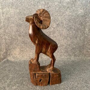Bighorn Sheep Ram Carved Wood 14” Sculpture Statue
