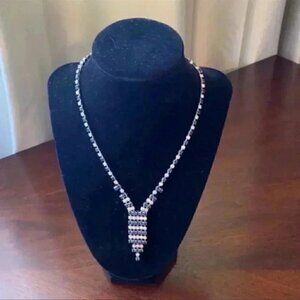 Women’s Blue and Silver Rhinestone Waterfall Necklace