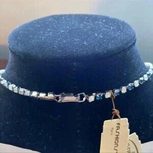 Bijoux D’Orlan Rhinestone Necklace Dainty Waterfall Sparkly Blue Silver NWT