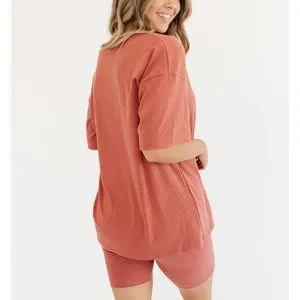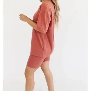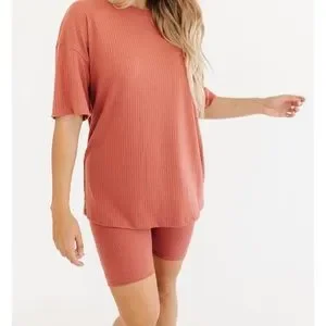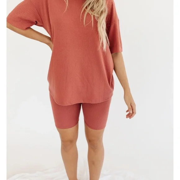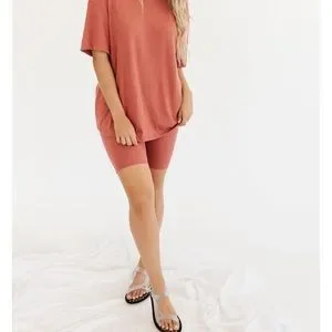 - bike shorts and oversized shirt