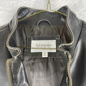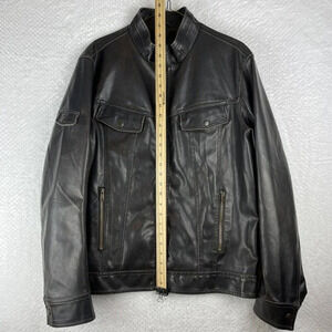 Sonoma Racer Jacket Men's Medium Faux Leather Pleather Dark Brown Biker Motorcycle