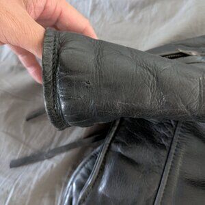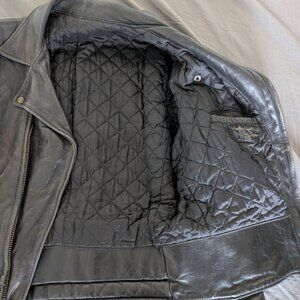 Great, thick and soft cowhide leather biker jacket. A few bite marks on the sleeve but can be easily mended