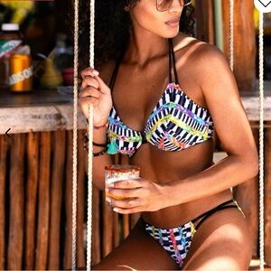 About Electro Rave : Put on a dazzling beach look with Electro Rave, a line with modern, on-trend cuts. Its vibrant prints directly inspired by the 90's and flattering, comfortable shapes will make your silhouette perfectly irresistible