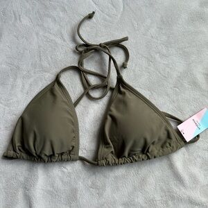 2 Stylish triangle bikini top. Adjustable ties for a perfect fit. Ideal for beach days. One hot pink and one army green. Never worn either, no tags on pink, tags still on green. Bought for $14 each, asking $20 for both