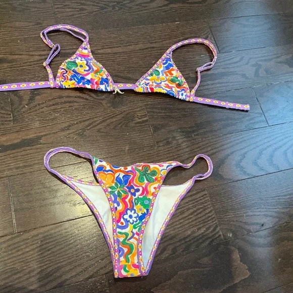 Bydee swim set. Prague top in salsa and Prague bottom in salsa. Size small. Colourful print. Barely worn.