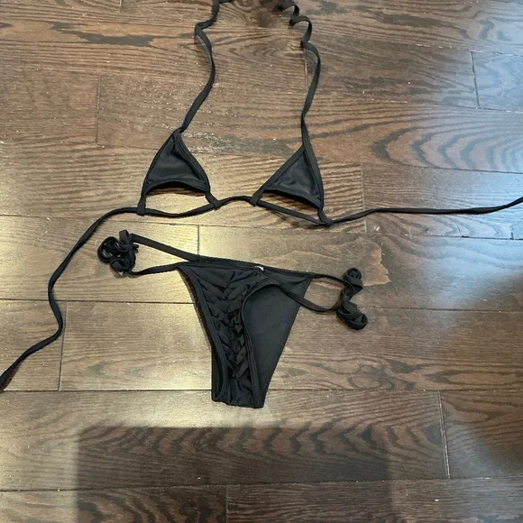 Sexy SHEIN black bikini set showing flattering under boob. Size small. Great condition.