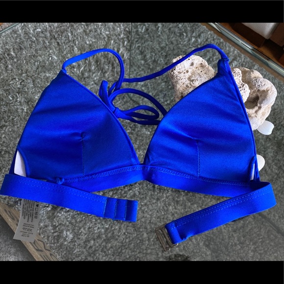 Haut de bikini sexy d’un superbe bleu royal. Cordes pour attacher au cou et une agrafe au dos. Comme neuf.