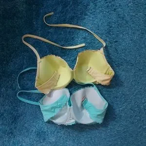 Pre-owned ( there is some pelling on both tops-see pic for details-, there is 1 pink shade on the yellow bra, not visible at all)
