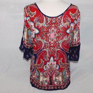 Bila Womens XL Rayon Cold Shoulder multicolour Short Sleeve Peasant Top Blouse
