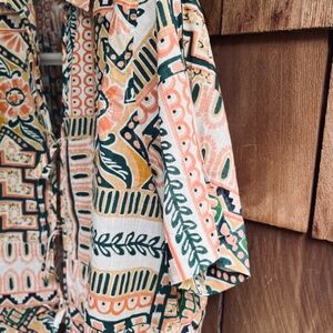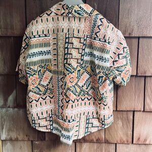 Bila•77 Sz S Thin Delicate Oversized Shirt in Boho Style Tie Fastener Patchwork