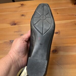These shoes are in great condition. Some nice detail in the design of the buckle, with two toned leather and gold.