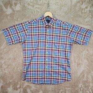 Bill & Blass Plaid Shirt Non Iron Button-Down Colorful Checkered Pattern Mens Size L