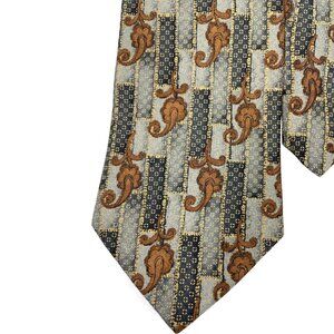 Bill Blass Signature Silk Tie Geometric Baroque Brown Gray
