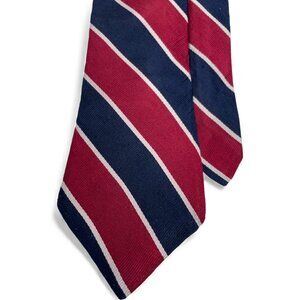Bill Blass Silk Tie Repp Regimental Red Blue Striped