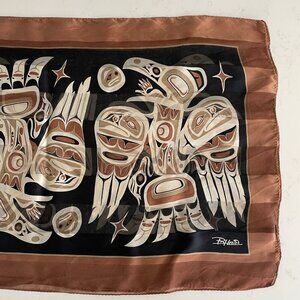 Features: Raven Steals the Light design by Tsimshian native artist Bill Helin, 100% Silk w Satin Stripe, indigenous, artwork