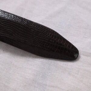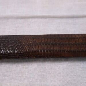 This belt is perfect for collectors or anyone seeking a high-quality leather belt with vintage craftsmanship and distinctive reptile-inspired grain. A versatile accessory that adds character to any outfit.