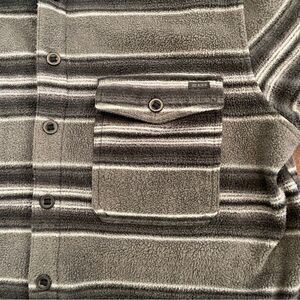 Billabong A/Div. Adventure Division Soft Fleece Button Up Hoodie Men's L Pockets. Shirt, jacket, shacket. Very good used condition. I'm not sure if there is supposed to be a string through the hood, but if so, I do not have it. Please see photos for approximate measurements.