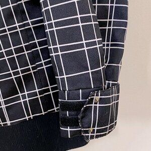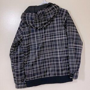 Great used condition. No holes or flaws. Black and white grid style pattern. Lots of pockets. Armpit vents. Size S. Hem is not stretchy, this is why I’m selling it it hits right at my hood and there’s no give so for me it’s too tight. Please see measurements below.