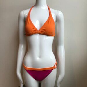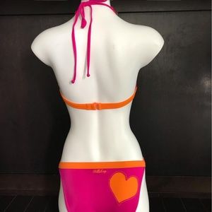 Billabong BLUE CRUSH era Vintage bikini solid Orange & Pink halter heart RARE