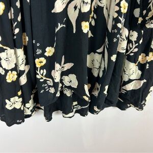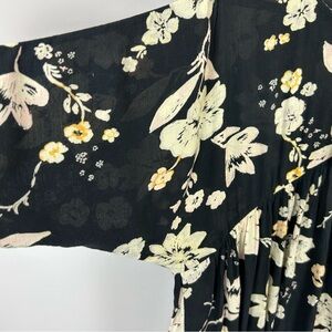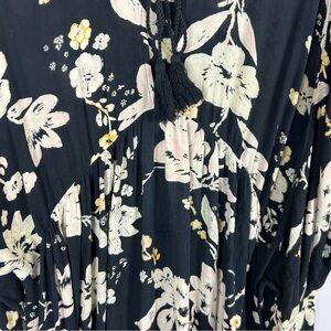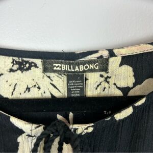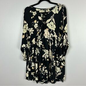 Billabong Black and Cream Bishop Sleeve Floral Oversized Tunic Size Medium