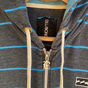 Pre-loved Mens hoody size small. This is a men’s hoody but previously owned and worn by me. I liked the relax fit of the men’s small hoodies after surfing more than the tight fitted ladies versions. Better prints too. So if you’ve got questions, ask away, happy to help. Has a good sized hood and all the classic Billabong logo tags, leather tags, metal hanging logos, etc. Please note-*some piling, chipped paint on the B logo zipper pull, discolouration on cuffs and overall general pre-loved wear. Priced relative to condition.