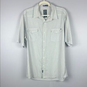 Billabong Gray Stripped Casual Button Down Shirt Short Sleeves Size Large