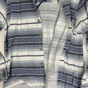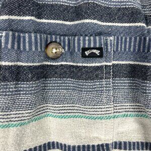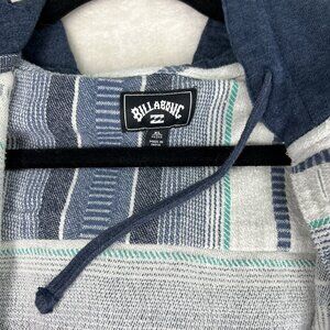 Billabong Hooded Button Shirt Men's XL Black Blue Hoodie Long Sleeve Striped