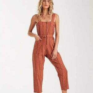Play up your curves in the fitted Light the Night Jumper. Made from a natural feeling cotton and flax blend, the sleeveless playsuit brings a retro tone with an exposed center front zipper and belt with a D ring closure.