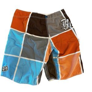Billabong Mens Board Shorts Fall Autumn Blue Orange Brown Plaid Surfer Size 34