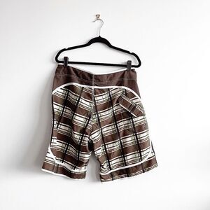 Billabong Mens Board Shorts Plaid Embroidered Signature Trunks Brown Sz 36