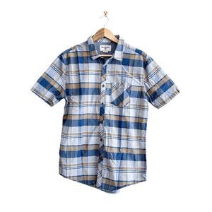 Billabong Mens Short Sleeves Button-Up Plaid Shirt Blue Tan Size Large