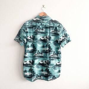 Billabong Mens Summer Shirt Button Down Short Sleeve Palm Print Green Large