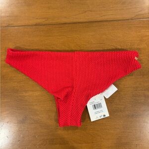 Low-rise ribbed bikini bottom in vibrant red. Smooth stretch fabric for a snug fit. Simple, versatile style for mixing and matching. Flattering cut that sits comfortably on the hips.