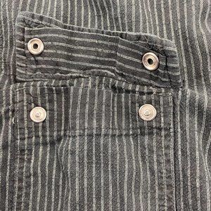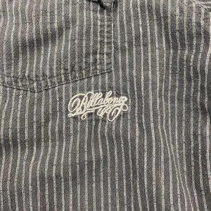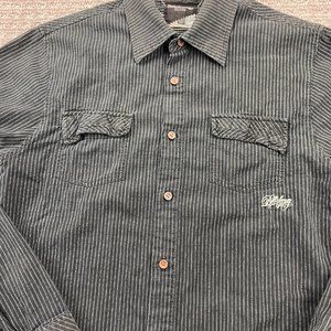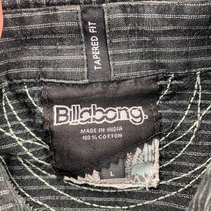 Billabong Shirt Men Large Black White Stripes Button Up Long Sleeve Embroidered