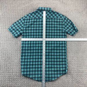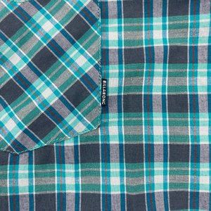 Billabong Shirt Men Medium M Teal Gray Plaid Button Down Chest Pocket Casual