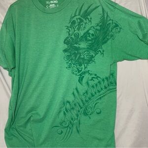 Billabong Skull Art T-Shirt Skateboarding Streetwear Short Sleeve Size XL Green