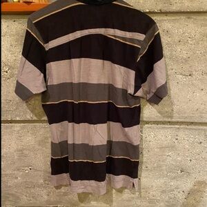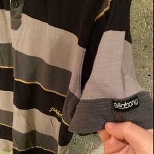 Black, gray, silver and gold striped mens shirt in VGUC. Previously worn by husband. Typically with Levi's and flip flops like a casual surfer, or dressed up a little more for golfing. We like buying Billabong mens polo shirts because they have a great "slim" fit option and lots of cool unique details that elevate them from being a plain old polo. Not to mention their fabric is super soft. Thanks for looking! If you bundle 2+ items together I will send you an offer.✨ Please feel free to request measurements you may need or send questions you have before purchasing. ✨