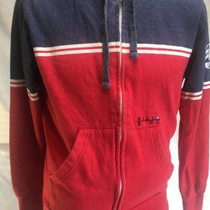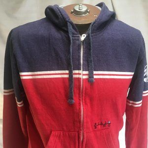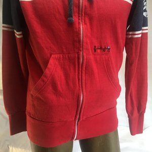 Billabong Sweater Hoodie Mens Small Red Blue Sweatshirt Skater Logo Stripe Zip