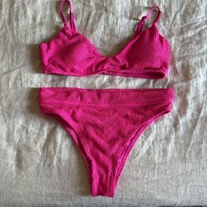 Billabong Swim Ribbed Bikini Set in Fuschia hot pink