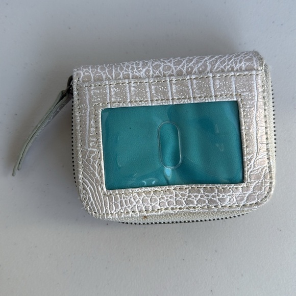 Billabong Wallet Faux Crocodile Leather Metallic Off White and Turquoise
