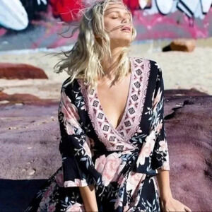 Billabong Womens Small Floral Wrap Belted Mini Dress