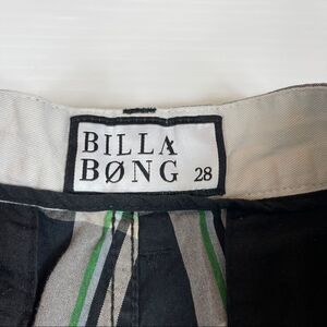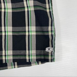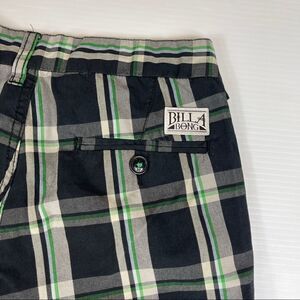 Billabong Women's Green Black White Plaid Flat Front Chino Shorts, Size 28/16. Cotton/Polyester Blend. Two front slash pockets. Two back pockets, with button closure. Very good used condition. Please see photos for approximate measurements.