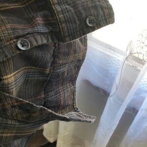 Billabong men’s dress shirt brown/black plaid SZ L