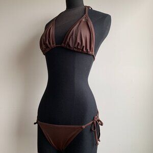 Billabong surf BLUE CRUSH Vintage bikini solid brown D cup Small bottom set RARE