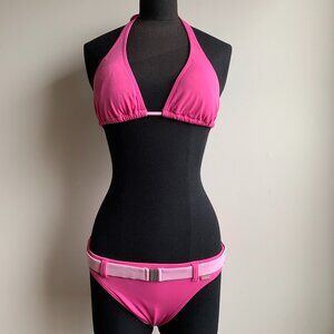 Billabong surf BLUE CRUSH era Vintage bikini pink belted halter top set RARE