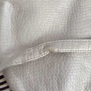 Not leather - the straps has a little spot that has peeling - see last pic