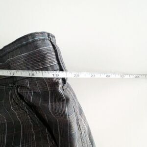 Billabong Chino Shorts Brown Plaid Mid Length Flat Front Men's Size 38. Three front slash pockets. Two back pockets, both with button closure (the one on the right side is hidden). Embroidered logo on back. Good used condition- a brown stain on front of right leg. Please see photos for details and approximate measurements. 35% Cotton, 65% Polyester.